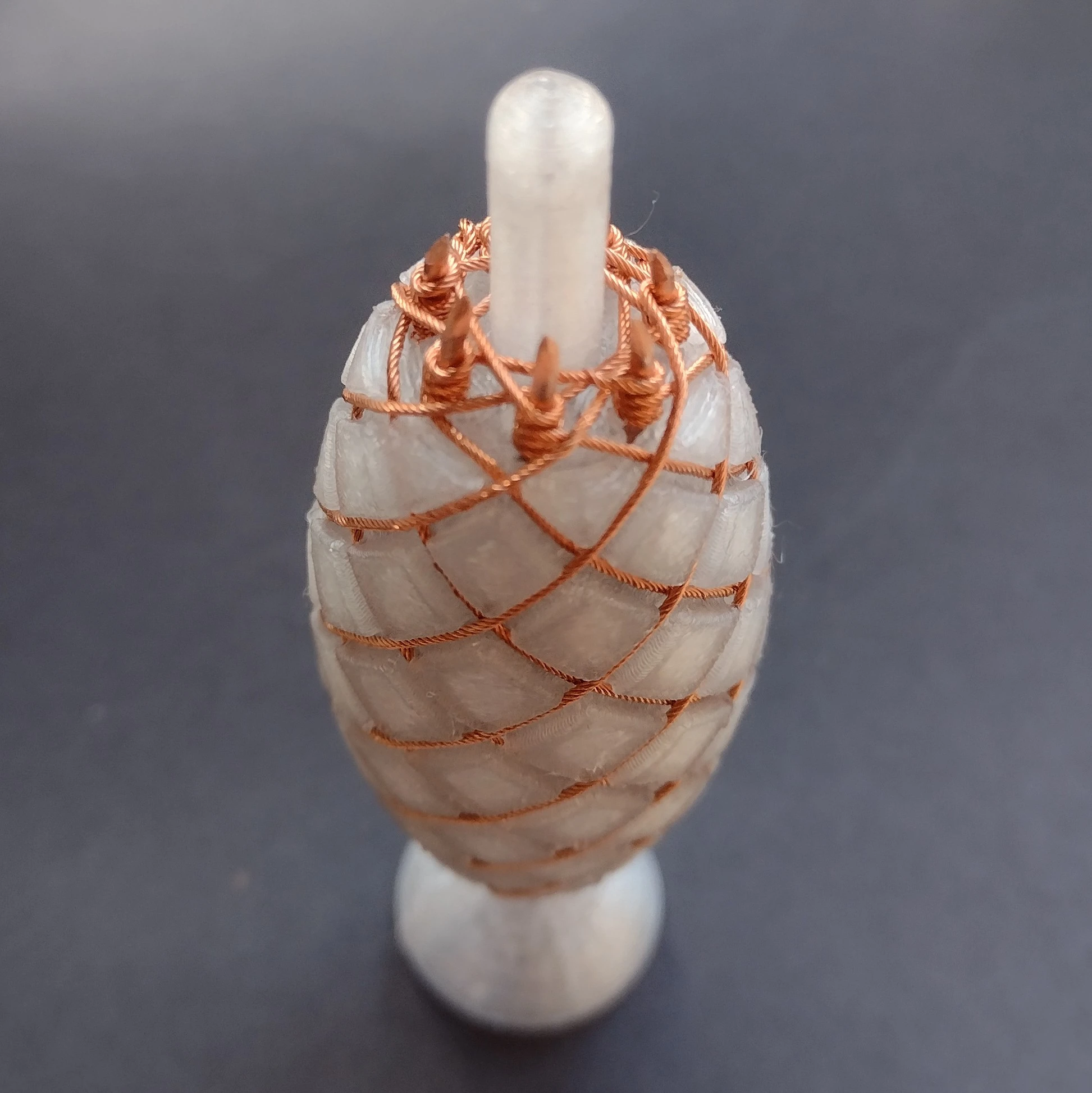 - намотка 7-и жильной правой косички — шаг 8, по сравнению с пилюлей Острогора и Жёлудем увеличен наклон — нет острых углов перехода при смене плоскостей.